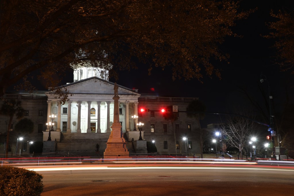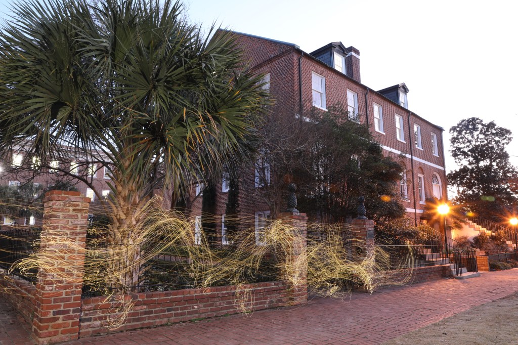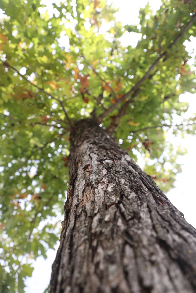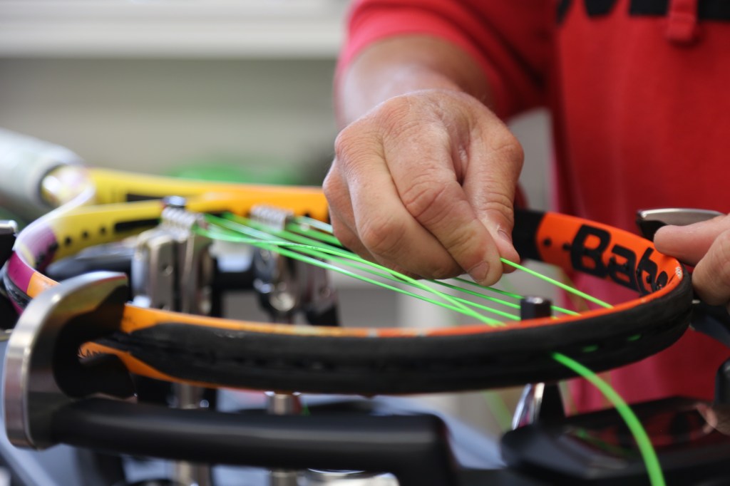 This is is a picture of a tree in five points. It shows perspective becasue the viewpoint is under the tree.Owner Adam Vanloan is pictured stringing a tennis racket that he is in a rush to finish. One of the most important parts of Breakpoint cola is the stringing service they provide. In order to beat out other stores they provide same day stringing that is not offered at many places around the Columbia area.